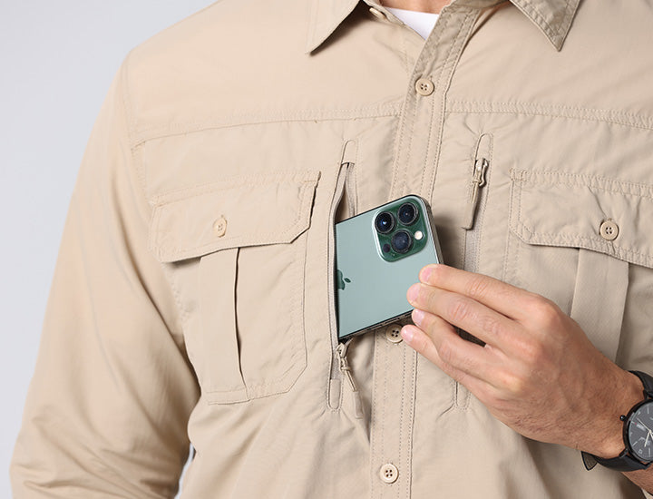 Convertible Design: Long sleeves feature hidden zippers that easily convert the shirt into short sleeves—ideal for changing weather or outdoor activities.